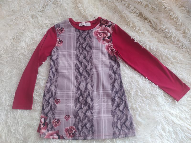 Платье-туника на рост 134-140см, доточка носила быстрее,ий было как платье, рост 134-140 быстрее будет как туника.В идеальном состоянии,ткань эластичная, хорошо тянется,