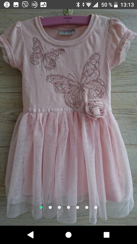 Платье нарядное фирменное next в отличном из стоянки. Размер указан 1-1,5 года, но в первую очередь, ориентируйтесь на замеры: длина от плеча до низа 50см - полуобхват груди 26см Юбка трикотаж + два яруса самого мягкого фатина. Впереди хорошая качественная аппликация бабочки.