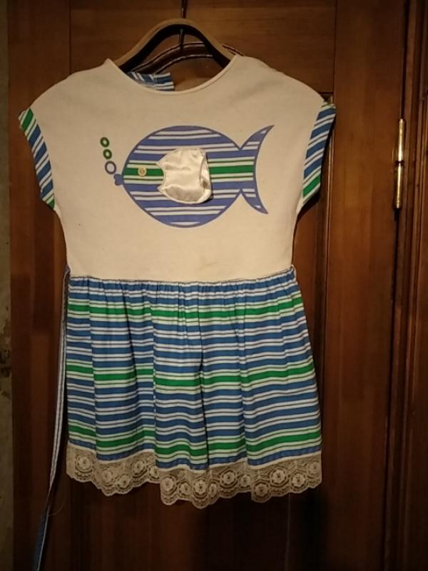 плаття для дівчинки 7-10 років...... заміри та фото за запитом... застібка на симпатичні ґудзики у формі рибок....талію можна зафіксувати поясом тканина натуральна та не паритиме дитину.... повернення немає