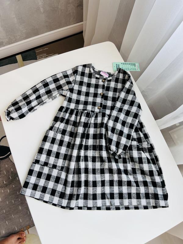 Очень красивое платье в клетку с двумя карманами спереди. Можно носить дольше