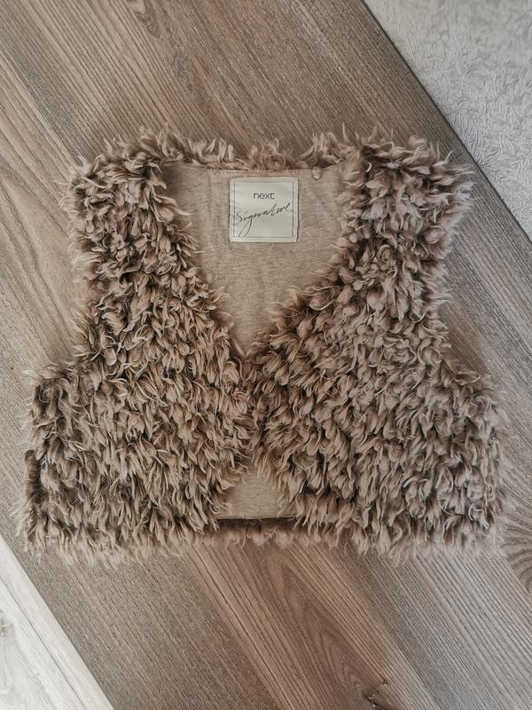 Стильная жилетка Next на девочку на 5-6 лет. В идеальном состоянии. Не теплая, больше для стиля. Очень красиво смотрится к платье с длинными рукавами. Отдам платье в комплект в подарок. По платью есть экономанс, поэтому обожают так.