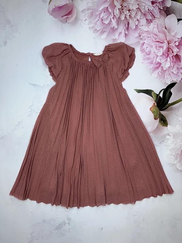 Стильное, плиссированное платье пудрового цвета. Усыпано золотистым горохом. Подкладочная ткань полиестер. Состояние идеально. 🏷️C&A 🔹6 лет/116 Длина 60. ПОГ 31+