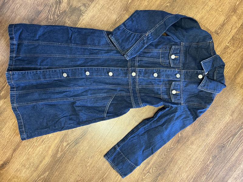Очень стильное и качественное джинсовое платье для настоящих модниц. Темно-синего цвета, рост 140