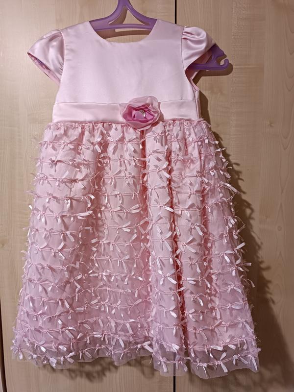 Гарна сукня на дівчинку 4-5-6 років (дивіться виміри), рожевого кольору. Напівоб'єм грудей-31, довжина до пояса 20, після пояса-45.Стан нового