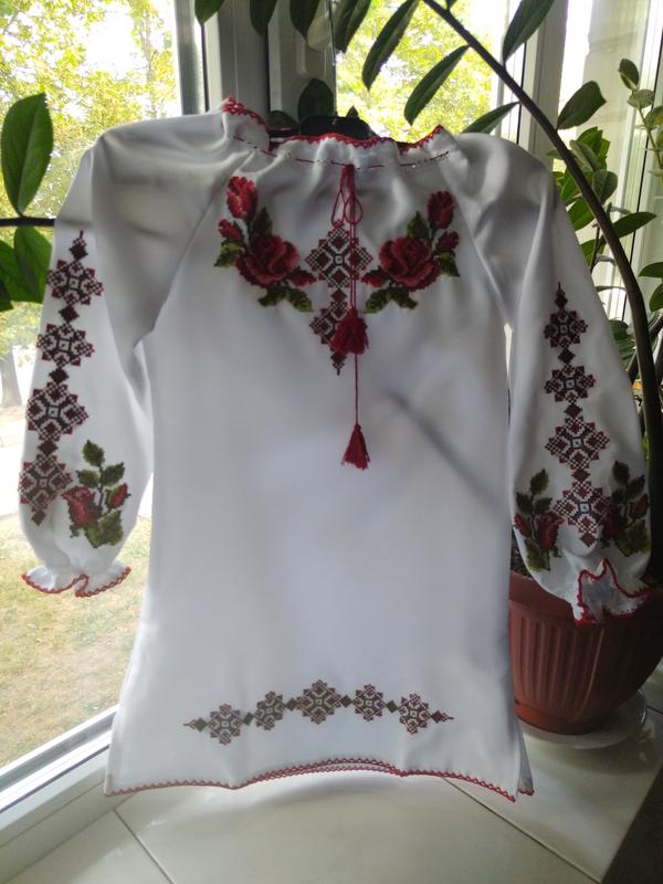 Фабричное производство Машинная вышивка на рубашечном полотне гладь Замеры Ширина по груди 31 см (полуобъем) Ширина по талии 29 см Ширина по стегнам 33 см Длина рукава от горловины 45 см (манжет на резинці) Длина 61 см