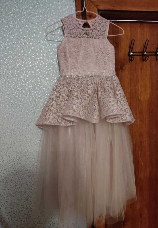 Очень красивое корсетное платье маечкой.Верх-гипюр,юбки-фатин.На рост 116-128см.Есть недостаток - отрезано пара кусочков фатина на нажних 2х юбках(фото 6).Нет шнурка от корсета