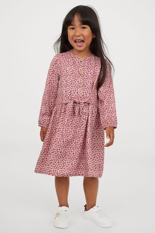 Платье из мягкой вискозы в цветочный принт с пуговицами спереди и рукавами длиной 3/4 со скрытой резинкой на манжетах. Шов со вставной лентой на талии и завязкой спереди, юбка-баллон. Без подкладки. Состав: 100% вискоза Возраст 9-10 лет ПОГ - 37см ПОТ - 38,5 ПОБ - свободно Рукав - 51см Плечи - 32см Длина - 78см