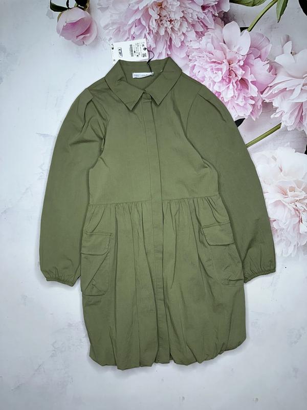 Новое платье от Zara оливкового цвета Есть карманы Застегивается спереди на пуговки 11-12 лет/152 Длина 76(33). ПОГ 37. Рукав 52