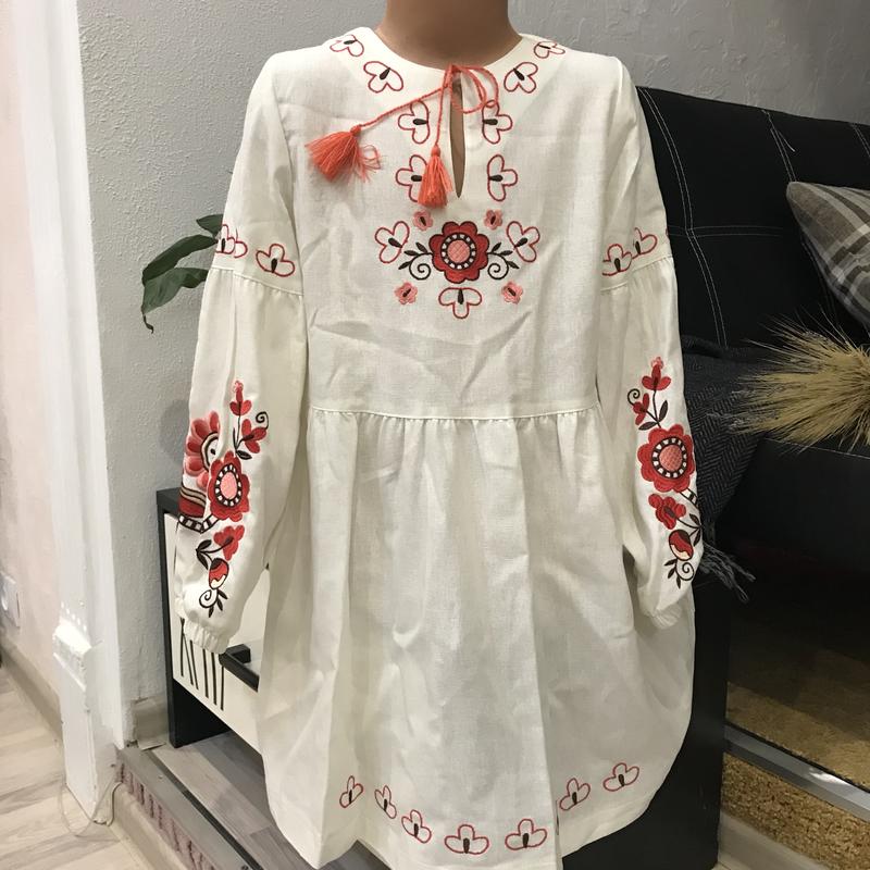 Нова етно колекція фабрики Бембі, Тканина лен машинна вишивка, вільний крій. Сукня вишукана, стильна зручна та сучасна. Розкішний рукав, відмінна фурнітура. Якість супер!