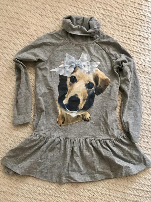 Платье с рюшей с рисунком собачки,5 рочков. Состояние идеала может 2 раза одето.