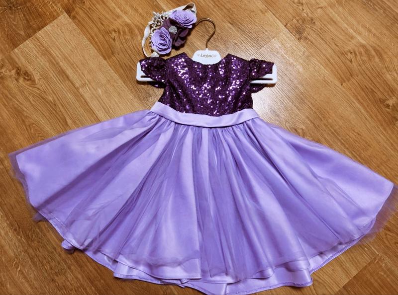 Продам платье на девочку. Подойдет на год так и на два. Лилового цвета. Верх обшито маечками, низ,- атлас+ фатин. Взади на молнии, бантик крепится шпилькой. К образу прилагается диадема. Платье после ручной стирки. В хорошем состоянии. Единственное есть дырочка на фатине, носка не влияет.