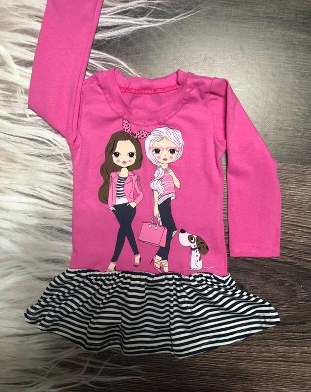 Сукня з довгим рукавом. Малинове плаття зі спідницею в смужку. Малюнок накат. Україна. Розмір: 📌26/52 (92-98 см): плечі 21 см, довжина рукава від плеча 28 см, довжина 43 см, НОГ 24 см. 📌28/56 (98-104 см): плечі 21 см, довжина рукава від плеча 30 см, довжина 47 см, НОГ 25 см