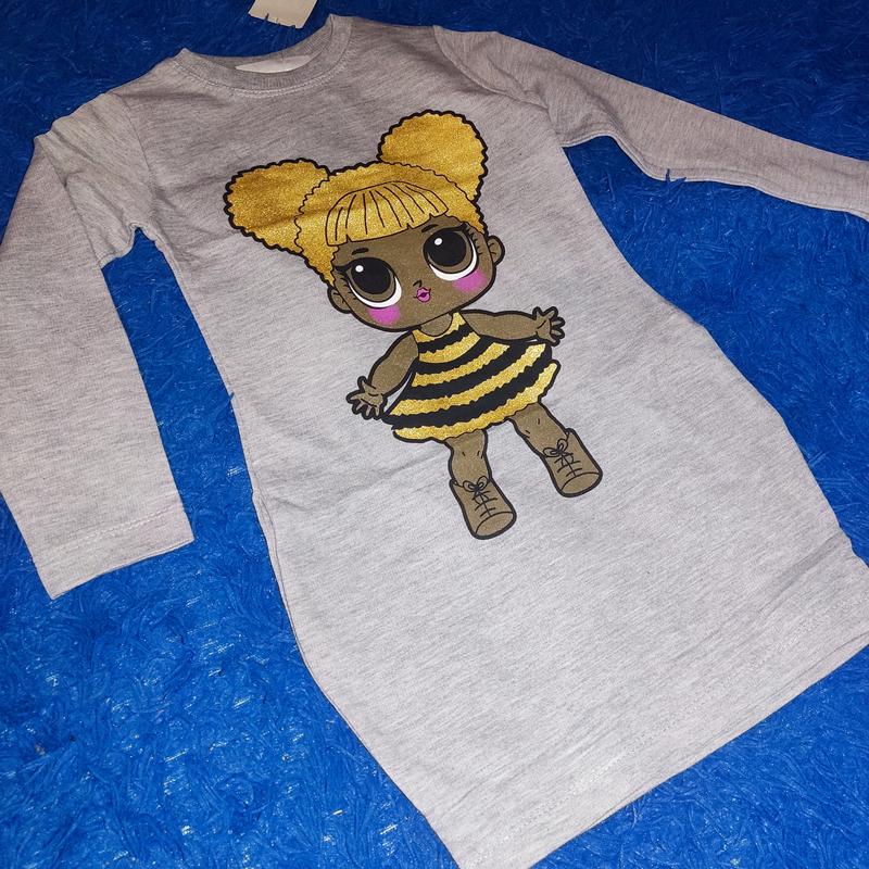 Платье LOL на рост 104 см, 128-135 см производства Турция. Качественный пошив, модный и популярный принт украшен глиттером. Есть два кармана. Выглядит очень прилично. Покупкой останетесь довольны. 104см длина 54см, рукав 35см, ширина под руками 28см, ширина по бедрам 33см 134см длина 68см, рукав 45см, ширина под руками 34см, ширина по бедрам 38см. Ответим на все Ваши вопросы.