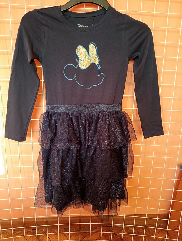 Коттоновое платье,с сияющим принтом Микки, Юбка-фатин с искринкой.Ухаживается супер.Довжина-75,плечи-30,рукав-48,грудь-33.Бренд DISNEU