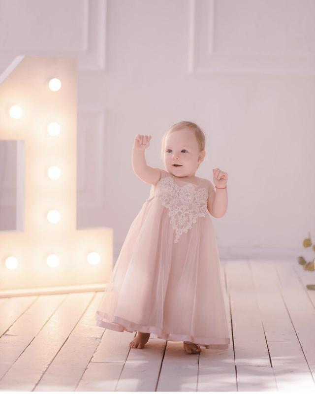 Платье детское в пудровом цвете. Размер 1-2 года. одета на съемку 1 раз. Стан - идеальный