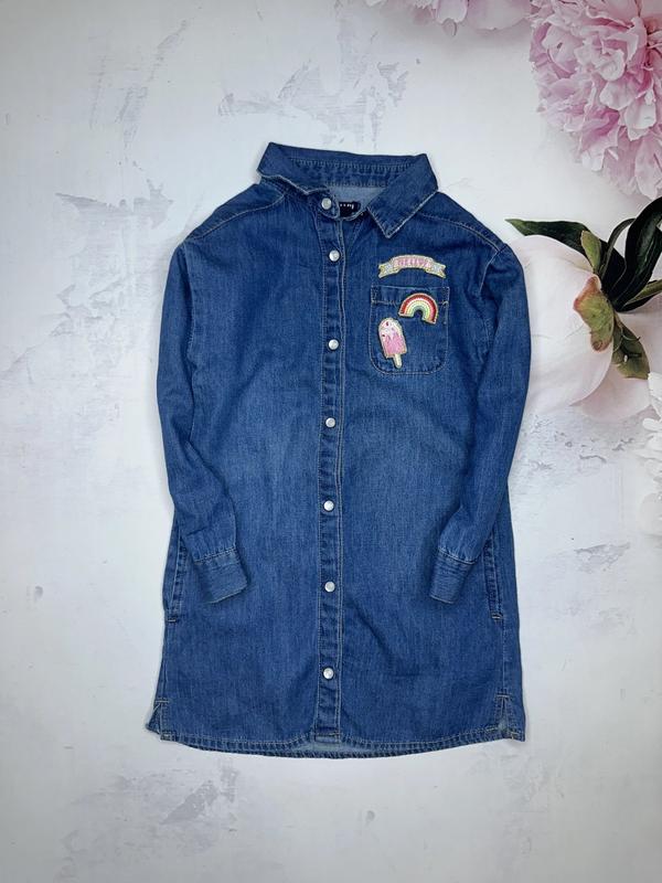 джинсовое платье с нашивками 3 года Kiabi длина 51. ПОГ 28. рукав 31-40