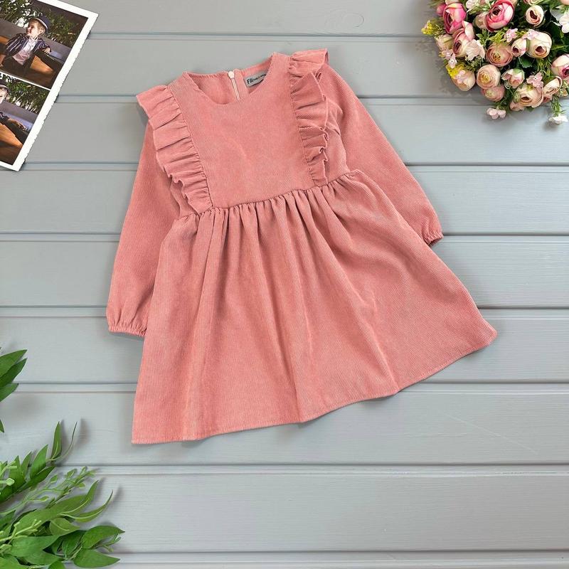 🍁Платье микровельвет розовое пудра, воланы. Ткань очень приятная к телу. Не линяет, есть застежка сзади для удобства. Горловина украшена красивой собранной стежкой. На рукавчиках резиночка. Производитель Украина. 📐Замеры: 104 - длин. 46 / полуобхват 29 / Рук.33 110 длин. 51 / полуобхват 29 / Рук.36 116 - длин. 56 / полуобхват 30 / Рук.38 122 - длин. 58 / полуобхват 30 / Рук. 40 128 - длин. 64 / полуобхват 32/рук. 43 💰Цена 385 грн