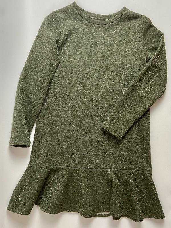 Тепла зручна сукня для школи (до прикладу). Зручно перевдягатися. Колір - оливковий з тоненькою люрексною ниткою. Ідеально сидить на будь-якій фігурі. Виглядає гарно, фото не передає. Добре переться, зносостійка, не кошлатиться. Заміри на фото. Розмір приблизно - 134-140-146-152 (залежить від росту дитини). Пересилаю будь-якою поштою