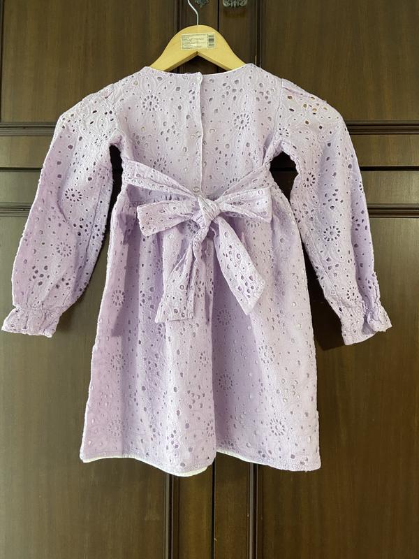 Платье из прошвы красивого лавандового цвета (в живую цвет ярче, камера не передает).Снизу хлопковая подкладка. Повязка на голову ручной работы, на резинке. Замеры платья: Длина 58 Рукав от шеи 47 Полуобхват груди 28