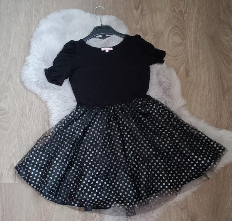 Платье Bluezoo на 9-10роков, Рост 140см, распашная юбочка Верх трикотаж+пишная юбочка на подкладе Длина 68см Плечи 25см Пояс 30см Пог 35см Верх красиво тянется Стан замечательный