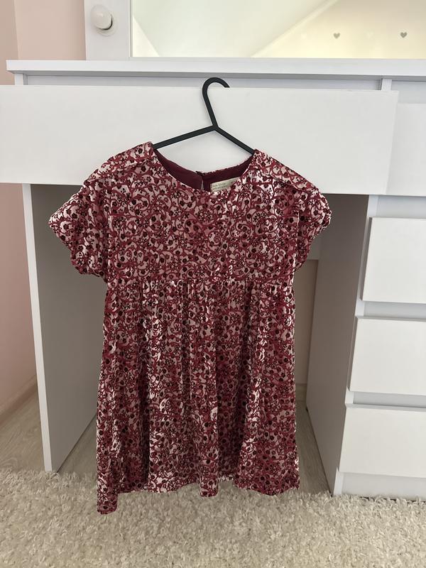 Велюровое платье с коротким рукавчиком, на подкладке Длина 54 см ПОТ 31 см С завышенной талией на резинке