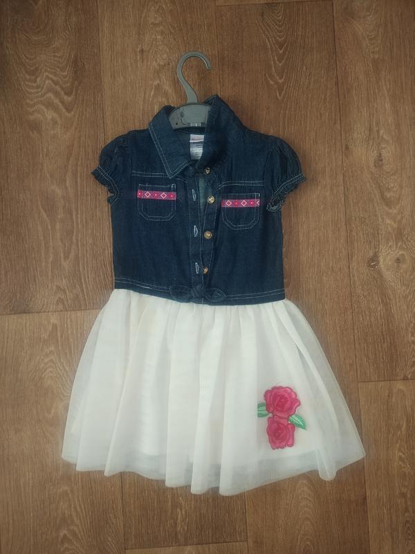 Очень красивое, платьевом для девочки на возраст 4-5 лет (104-110см). Стан - идеальный. Верх платья джинс, юбка фатиновая с вышитым цветочком.