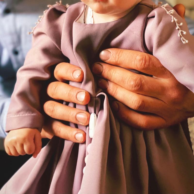 платье изготовлено из очень плотного материала в середине есть подкладка натуральный хлопок имеет красивый рукав размер до 7 месяцев