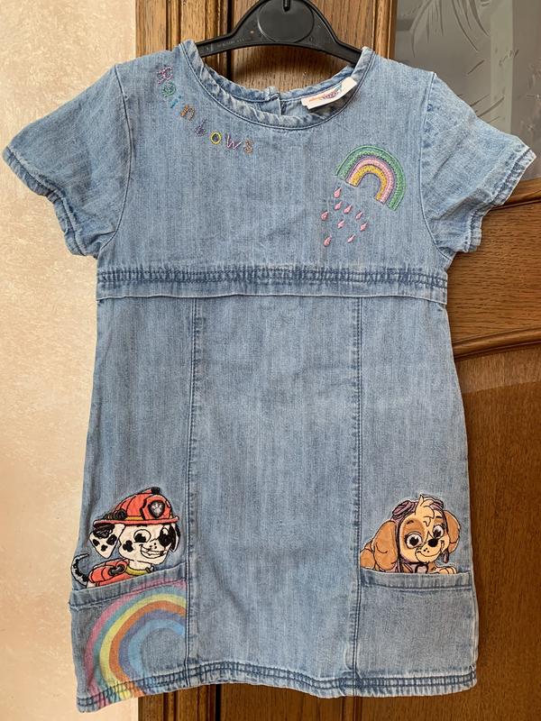 Красивое платье next с кармашками, в красивом состоянии из серии «собачий патруль», на рост 104, по факту на дольше, возраст 3-4 лет. Присутствующие малозаметные дефекты, указаны на последнем фото. Длина от плеча 55 см.