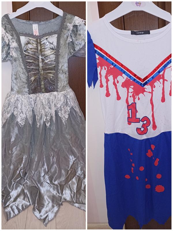 Сукні на Хеллоуїн на зріст 140-152. 1) Сукня F&F "мертва наречена". Заміри: довжина -100см., груди- 37см. 2) Сукня George "чарлідерка" + гольфи. Заміри: довжина -80см., груди- 35см.