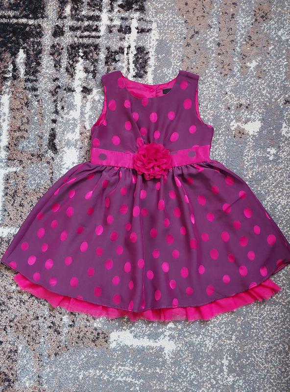 Праздничное платье в горох, с бантиком на талии и фатином.Новое.Но есть затяжка, разработала фото.Замеры сделать.