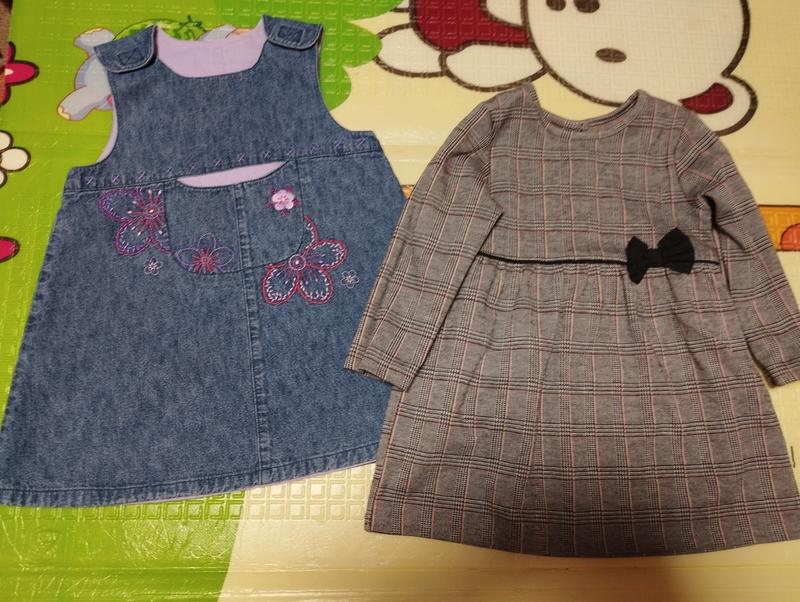 Тепленькое платье и джинсовый сарафан на трикотажной подкладке в очень красивом состоянии. Платье: Длина 46 см Пог 28 см Рукав 29 см Сарафан: Длина 46 см Пог 30 см