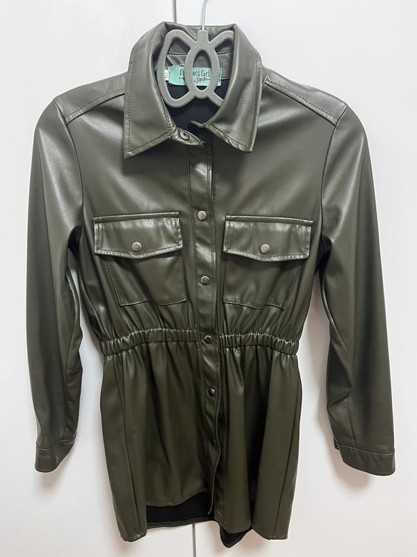 кожаное платье- рубашка. состояние нового, одетая один раз. размер 134 замеры: рукав 50, ширина под ручками - длина 70