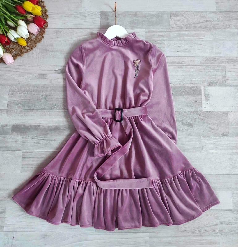 Таня 🧡В наличии 🧡 Стильное платье Ткань велюр рубчик, очень приятная и мягкая Украшение снимается, поясок в комплекте РЕКОМЕНДУЮ!! замеры:длин/рукав/пог 128р-69/47/33 140р-76/52/36 146р-80/54/38 +-2см