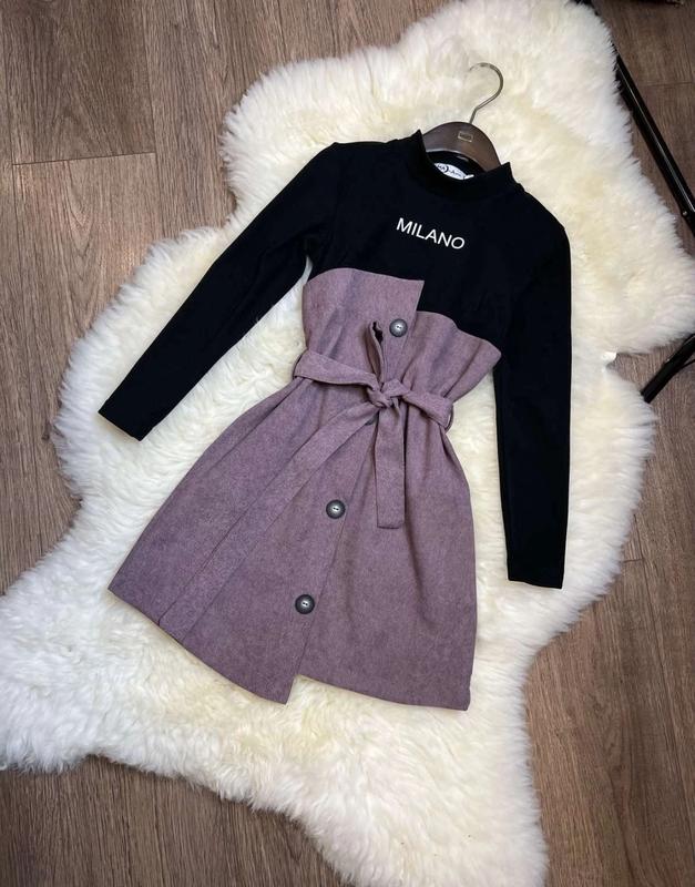 Стильное платье верх -гольф- термо трикотаж(теплый) низ- вельвет поясок в комплекті ГАРНАЯ КАЧЕСТВО 140(1 шт)-длина 73, пог 37,рукав от плеча 45 158(1 шт)-длина 82,пог 41,рукав от плеча 53 +-2см Греб