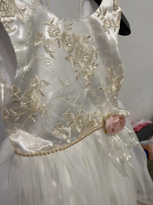 Красивое платье на девочку может быть как на 110 см так и 130 см. Хорошо регулируется на спинке поясок. Цветочек на шпильке Без дефектов