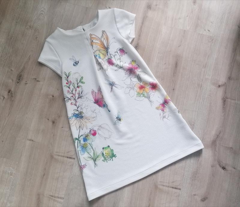 Фактурное нарядное платье от Next. А-силует. Очень нежная и праздничная. Ткань плотная, но не парка, ребенку в ней не жарко. Состояние: идеальный Цвет: белый с цветочным принтом Материал: 96% полиэстер, 4% эластан Размер: 7 лет, 122 Замеры: Длина по спинке 66 см Ширина плечей 30 см Длина рукава 9 см НОГ 34 см НОТ 37 см Ширина по низу 46 см Покупкой будете очень довольны!!