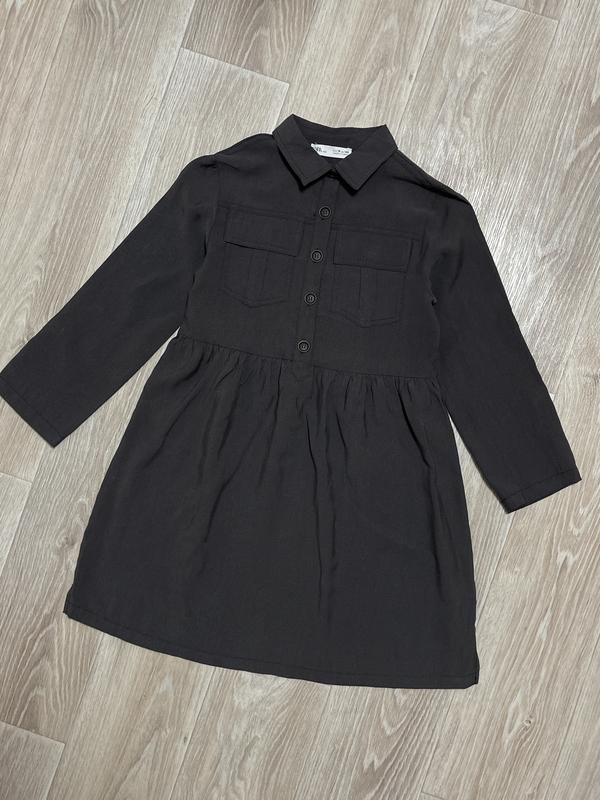 Платье с рукавом Цвет графит Нагрудные карманы Рукав можно подкатить Ткань легкая и приятная Застегивается на пуговки спереди Состояние нового 🏷️Zara 10 лет/140 Длина 77(32). Пог 39. Рукав 46-56