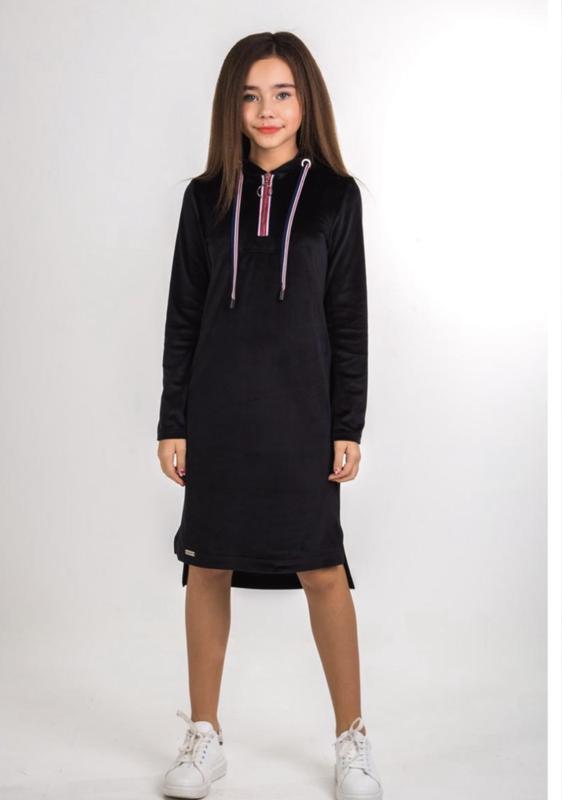 Велюрова сукня Періс ТМ Suzie колір чорний якість відмінна в наявності 140 р 140 р довжина рукава 50 см, пог 36 см, плечы 34,5 см, довжина спереду від плеча 80 см, довжина по спинці 86 см Доставка: Нова пошта і Укрпошта
