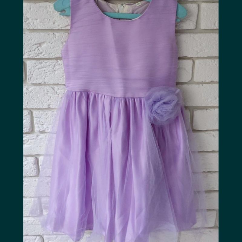 продам праздничное платье снизу атлас, сверху тонкий фатин, взади замочек, с пояском, цветочек отцепится. Одевали 2-3р.на праздника по набору 130 см, одевали с 4 до 7 лет., без недостатков.