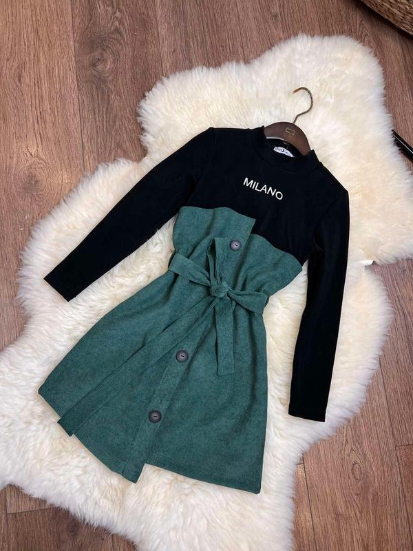 ландыш Стильное платье верх -гольф- термо трикотаж(теплый) низ- вельвет поясок в комплекті ГАРНАЯ КАЧЕСТВО 134(2 шт)-длина 69,пог 35,рукав от плеча 43 140(2 шт)-длина 73, пог 37,рукав от плеча 45 146(1 шт)-длина 76,пог 39,рукав от плеча 48 152(2 шт)-длина 78,пог 40,рукав от плеча 51 158(2 шт)-длина 82,пог 41,рукав от плеча 53 +-2см