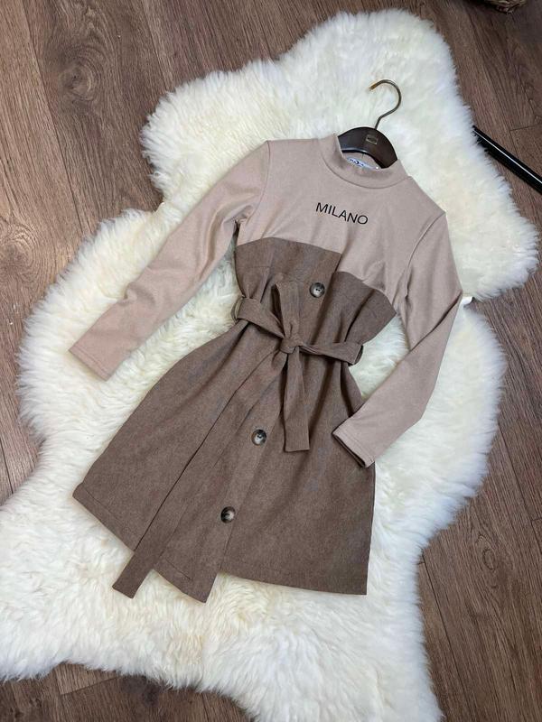 ландыш Стильное платье верх -гольф- термо трикотаж(теплый) низ- вельвет поясок в комплекті ГАРНАЯ КАЧЕСТВО 134(2 шт)-длина 69,пог 35,рукав от плеча 43 140(1 шт)-длина 73, пог 37,рукав от плеча 45 146(2 шт)-длина 76,пог 39,рукав от плеча 48 152(2 шт)-длина 78,пог 40,рукав от плеча 51 158(2 шт)-длина 82,пог 41,рукав от плеча 53 +-2см