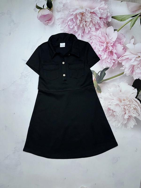 Черное платье с жемчужными пуговицами Нагрудные карманы Ткань эластичная Состояние нового 🏷️Zara 11-12 лет/152 Длина 75(31). Пог 36