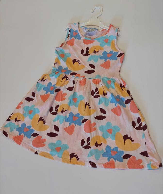 Яркое платье в цветочный принт от Waikiki нежно розовое. Состояние очень хорошее. Из нюансов, сбоку с левой стороны на юбке снизу есть малюсенькая зацепка и пара малозаметных пятнышек. На последнем фото показала. На бирке 5-6 лет. Замеры по запросу.