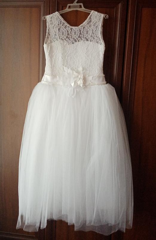Бальне плаття на дівчинку віком 8-11 років Стан майже ідеальний Поділ спереду трішки підрізаний, але загалом не помітно Одягали на новорічні ранки Ззаду на шнурівці Шубка-болеро ручної роботи (нитка "Травка" ) йде в подарунок до сукні