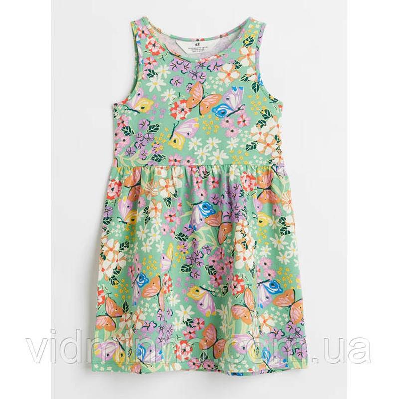 Детское платье на девочку. Платье без рукавов из мягкого хлопкового трикотажа Цветочный принт и растительные узоры 100% Cotton 4-6 по бірці Стан - идеальный