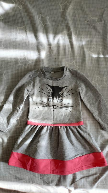 Мила сукня в садочок на 2-3 роки, зріст 98 см. в гарному стані, є ковтунці, але їх дуже мало і майже не видно. заміри на фото.