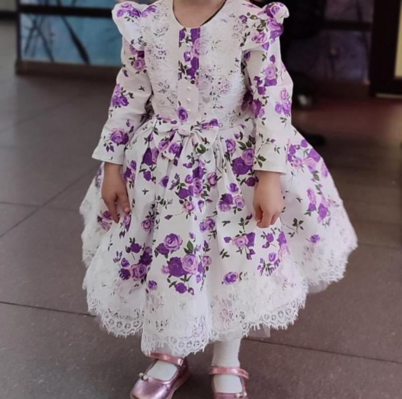 Детское платье в цветок с рукавом на праздник день рождения