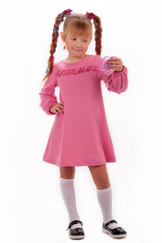 Платье для девочек из однотонного стрейч-кулира. Модель силуэта "Трапеция" с длинными объемными рукавами на резинке по низу, округлым вырезом и рюшей. Платье представлено в нескольких цветах на любой вкус. Свободный крой не сковывает движений, подходит как для худи девочек, так и для девочек плотного телосложения. Полотно хорошего качества, натуральное по составу, не линяет. Полотно: стрейч-кулир Склад: 95% бавовна, 5% еластан ,,2161
