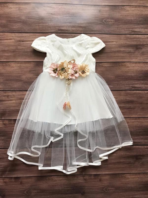 🇹🇷Турция Фатиново-кружевное платье с юбкой "Хвист павлина" декорировано съемной брошью. По спинке застежка "молния" Подкладка 100% хлопок + атлас в юбкой части Возраст по бирке: длина по переду/длина по спинке/ПО талии 2 года: 48см/67см/25,5см 3 года: 51см/70см/27см
