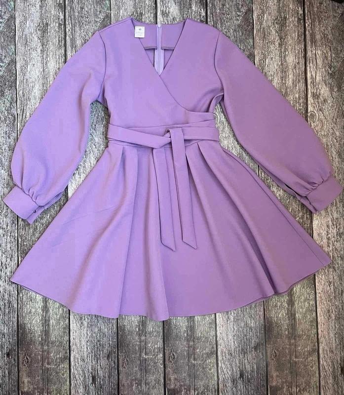 модняшка В наличии! Стильное платье для модниц По спинке к поясу застегивается на молнию. Спереду на запах. Пояс в комплекте. Тканина- костюмна. Замеры: 140 длина - 69см, рукав от плеча - 52см, полуобхват груди - 38см 164 длина - 87см, рукав от плеча - 63см, полуобхват груди - 45см